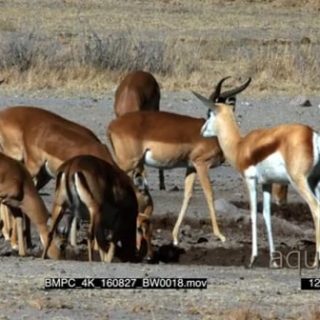 Impala herd drinking at the water point springbok in shot