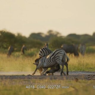 Herd of Zebra and Blue Wildebeest, fighting,mating behaviour,walking and standing.