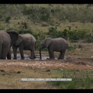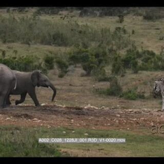 Select options DownloadElephant herd at waterhole while elephant calf chase zebra herd