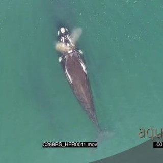 AERIAL of a Southern right swimming and performing