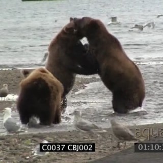 2 Grizzly Bears walking around and sniffing, walks towards each other and start fighting 2S XWS