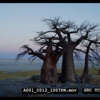 A Scenic Pan shot of Baobab trees late afternoon.