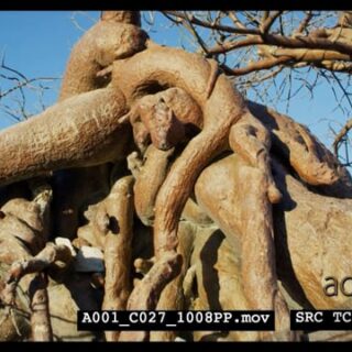 A Scenic, Medium Close Up and tilt down of the artistry shaping of Baobab tree.
