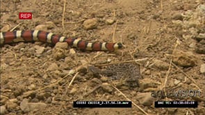 California Mountain kingsnake moves past small diamond back rattlesnake FF