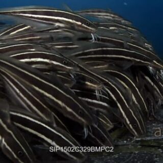 Select options DownloadWS to MS of school of striped eel catfish hunting, sucking on the sea sand