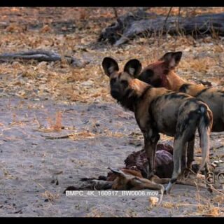 Select options DownloadAfrican Wild Dog walking to fresh Impala Kill, feeding WS